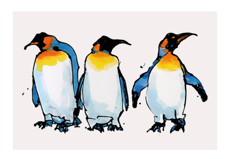 Three King Penguins Greetings Card