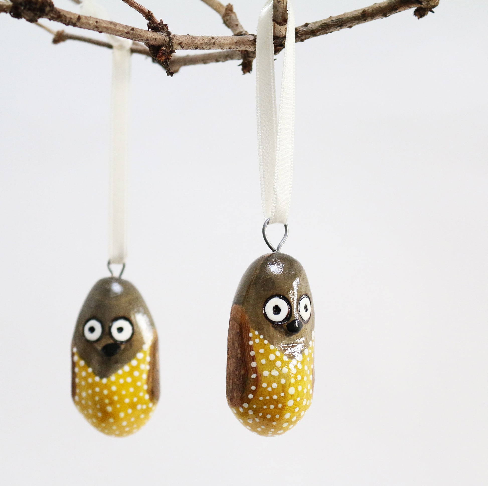 Hand Carved Wood Owl Ornaments