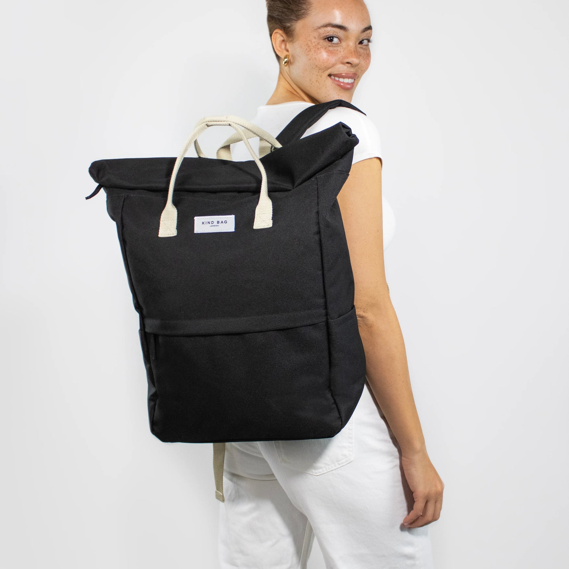 Kind Bag's “Hackney” backpacks are sustainably & ethically made with 100% recycled & recyclable water resistant fabric.