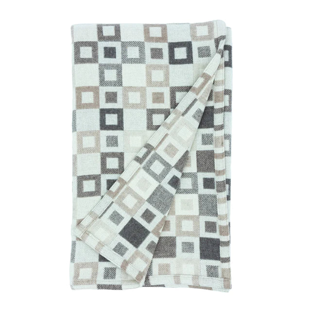 Pure wool throw beautifully hand crafted in Wales. From our friends at Melin Tregwynt Woollen Mill in West Wales this mid-century modern design was originally inspired by a woollen maxi skirt worn in the 1960's by Eluned Griffiths, second generation of this family owned company and mother of the current owner and Director.